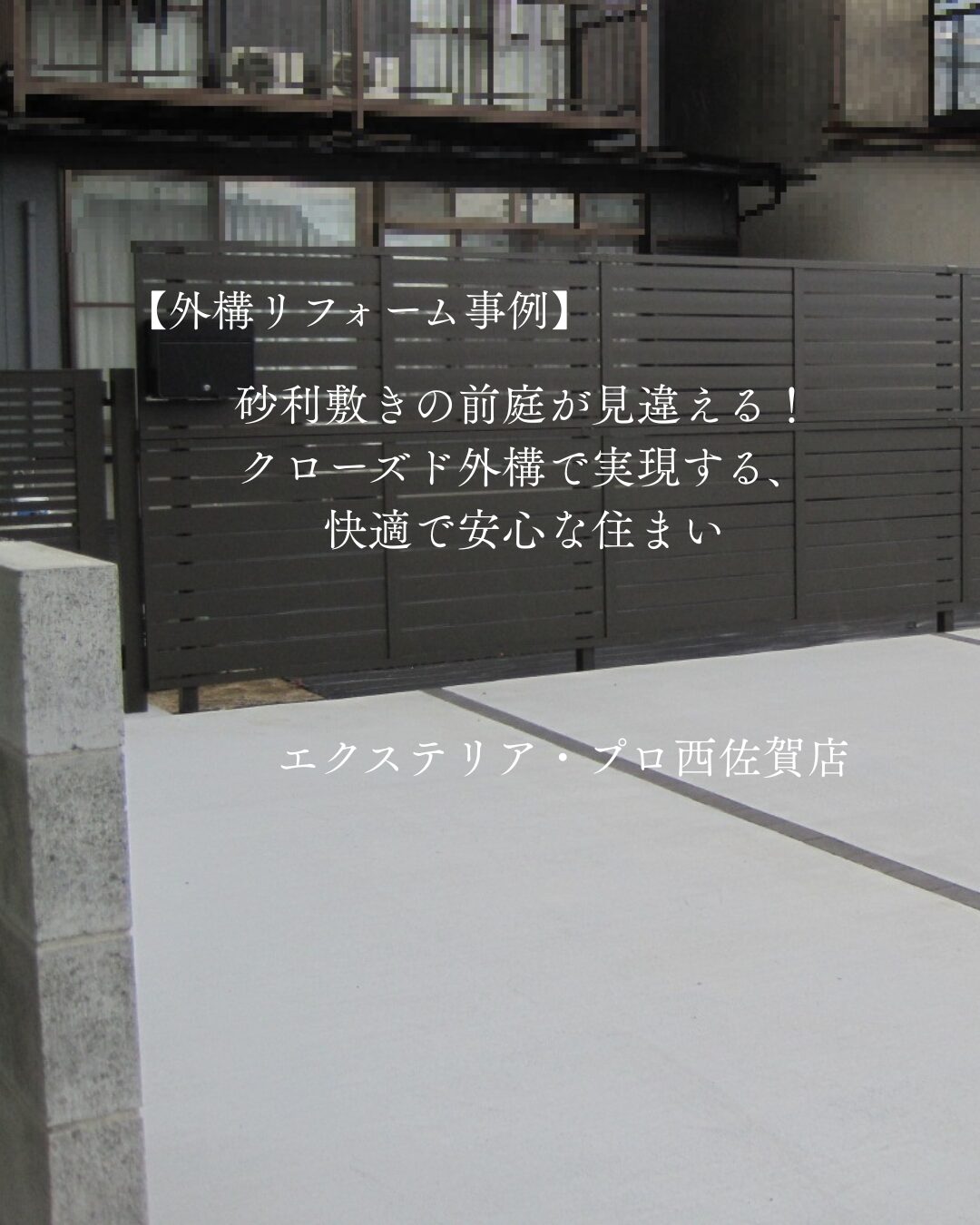 【外構リフォーム事例紹介】砂利敷きの前庭が見違える!クローズド外構で実現する、快適で安心な住まい:西佐賀店