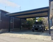 折板カーポートに木目調化粧...