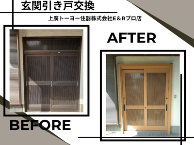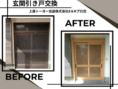 今回の工事では、長年使用されていた和風の玄関引き戸を、