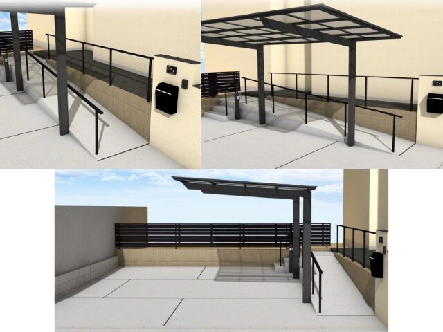 • スロープとリクシル「グリップライン」手すり(φ38丸型)を設置