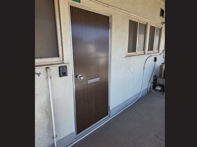 LIXIL ロンカラーFドア 握り玉 半外型 右吊 色:木目 サイズ:760*1811