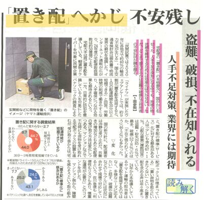 置き配のトラブル(盗難・汚損・プライバシー・マンション共用部への荷物設置)への対応策も検討課題です。