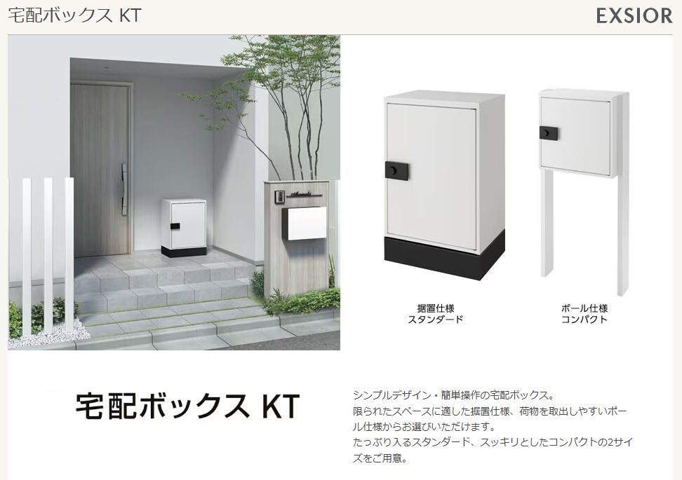 おしゃれなデザインの宅配ボックスも多く、門柱や玄関まわりの印象アップにもつながります。