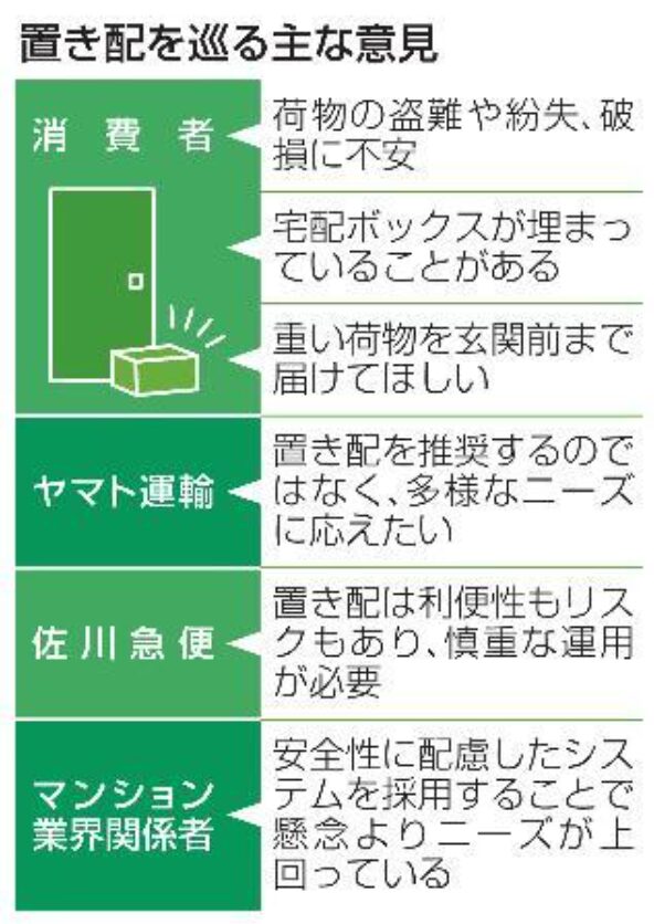 置き配のトラブル(盗難・汚損・プライバシー・マンション共用部への荷物設置)への対応策も検討課題です。