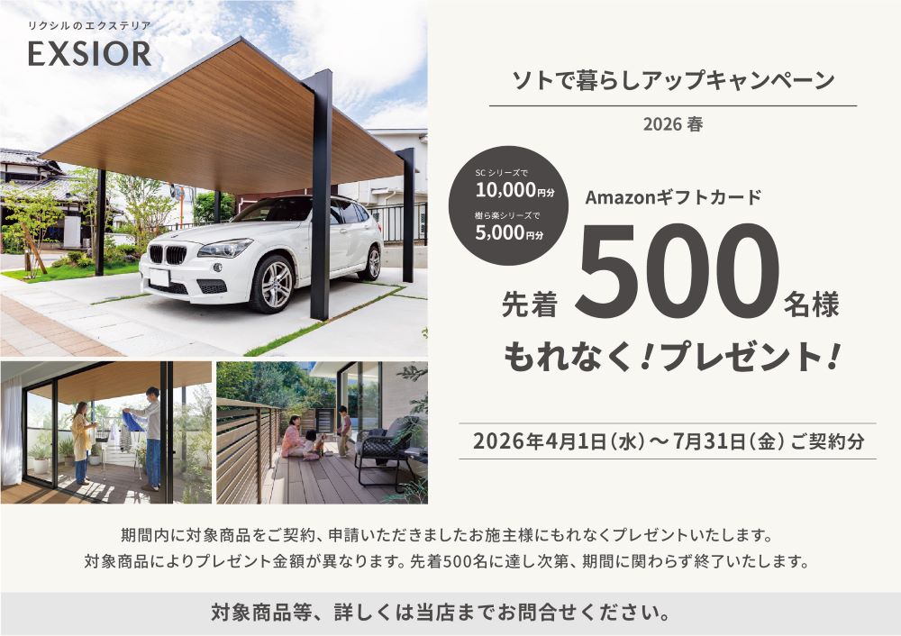ただ今開催中、LIXILエクステリアキャンペーンのご案内をさせていただきます![]()