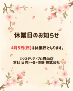 明日4月5日(日)は店舗休業日となっております。 お問い合わせに関しましては、ページ下部にあるお問合せフォームにて受け付けております。