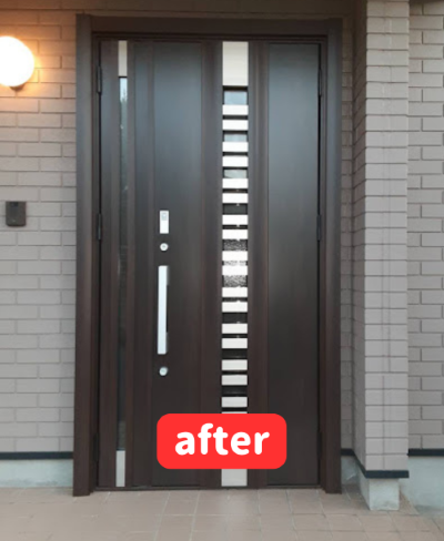リシェントなら既存のドア枠に新しいドア枠を取付けるカバー工法を用いて施工するので、壁や床を壊す大掛かりな工事もなく、1日で新しい玄関ドアに生まれ変わります!