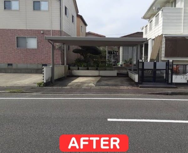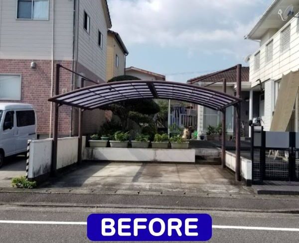 腐食して壊れかけていたカーポートを新しいカーポートに。