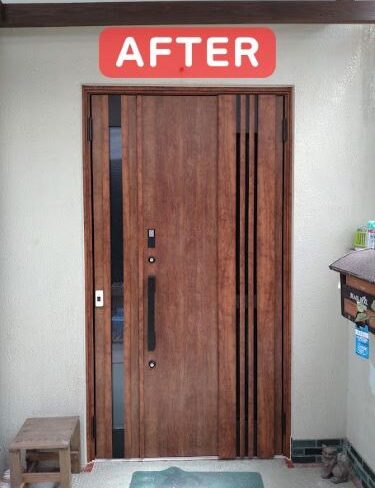 【日向市】1日で新しい玄関ドアに!採風タイプ&FamiLock付の玄関ドアへお取替えしました!