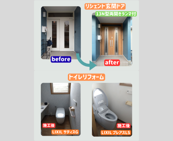 O様邸ではこれらの補助金とキャンペーンをもっと有効に活用したいと、追加で玄関とトイレ2ヶ所のリフォームを行いました!