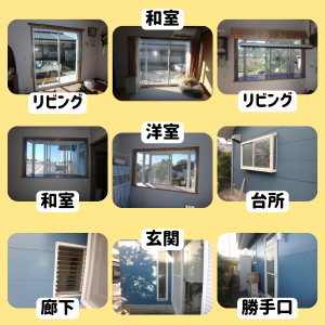 O様邸では現地調査後、計8ヶ所の窓と勝手口ドアのリフォームを行うことに。