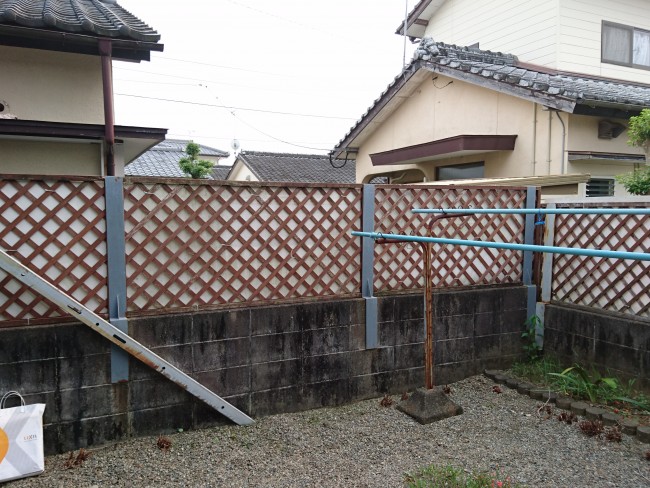 木製の場合は経年劣化で傷みが激しいので、丈夫なアルミ製に交換しました。なお、目隠し機能を持ちつつ、風通しのできるLIXILのセレビューフェンスにしました。