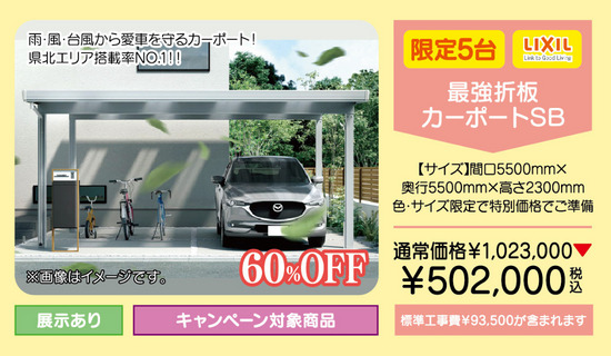 最強折板カーポートSBは当店の駐車場に展示しています。