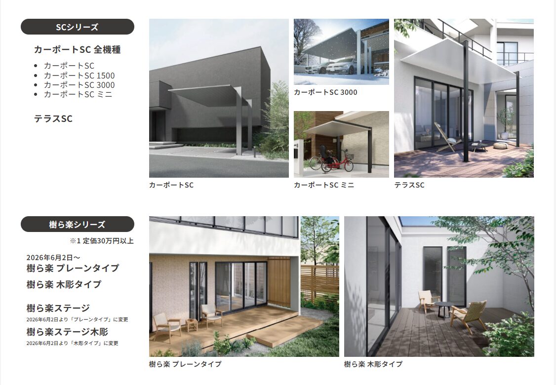 おしゃれでスタイリッシュなカーポートやテラスで評判の【SCシリーズ】、