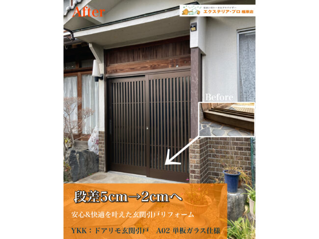 【段差5cm→2cmへ】安心&快適を叶えた玄関引戸リフォーム:橿原市