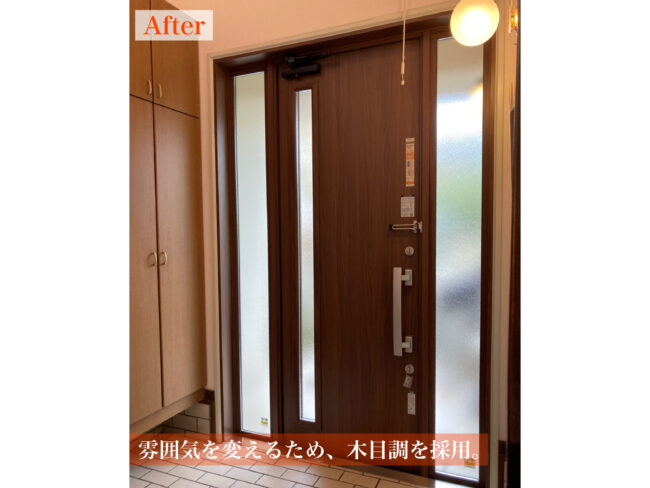 開閉不良や隙間といったお悩みを解消するだけでなく、玄関全体の印象がより良くなるよう、デザイン性にもこだわってご提案しました。