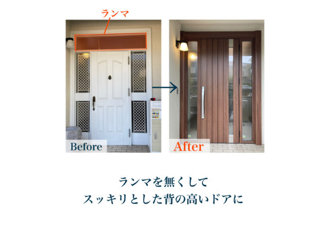 ランマや袖の撤去跡が目立たないよう細部まで調整し、見た目も使い勝手もご満足いただける仕上がりを目指しました。