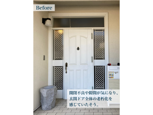 開閉不良や隙間といったお悩みを解消するだけでなく、玄関全体の印象がより良くなるよう、デザイン性にもこだわってご提案しました。