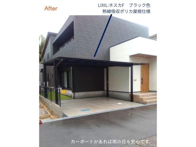 新築時にはカーポートを設置していないかったのですが、やはり雨や夏の日差しのことを考えてお願いすることにしました。