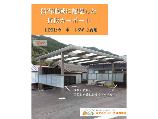 【雪にも強く明るさも確保】積雪地域に配慮した折板カーポート施工事例:天川村