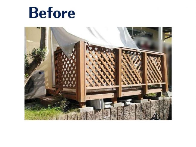 以前設置したウッドデッキが、年数とともに劣化が気になってきていました。
