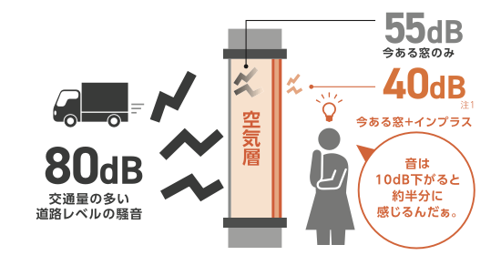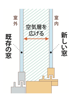 今ある窓の内側にもう1枚取り付けるだけで、