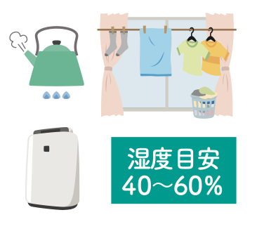 料理や室内干しの際は、換気扇を使ったり窓を開けて湿気を逃がしましょう。