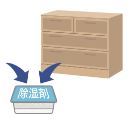 クローゼットや押し入れなど湿気がこもる場所には除湿剤が効果的。
