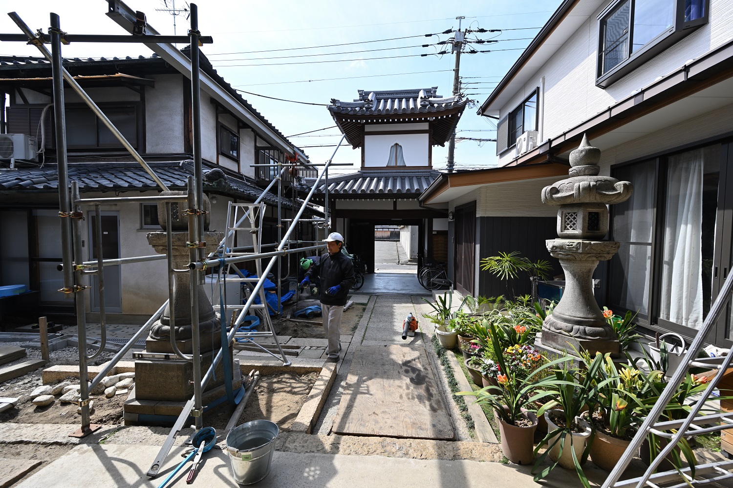 今日は「灯篭」の移動再設置を、造園業者の職人さんたちが施工していました。建立時?〇〇年前に 水平器もない時代にしっかりレベルを出しているのが素晴らしいと思います。