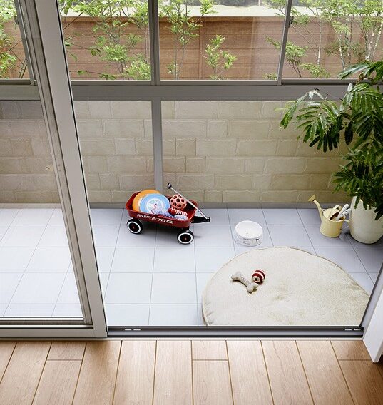 洗濯物を干さない時間は、お子様の遊び場やペットのひなたぼっこスペース、さらにはお気に入りのチェアを置いて「ガーデンルーム」としてティータイムを楽しむこともできます。