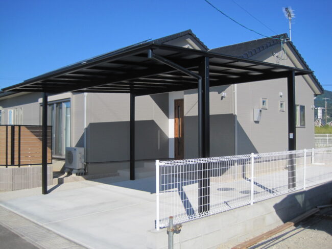 玄関前にある広々とした2台用のカーポートは雨の日も安心です。奥には、来客時にも便利な臨時駐車スペースを確保しました。