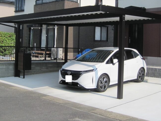・カーポート工事:ジーポートpro 900タイプ 2台用55-60 H25柱 明り取りなし カームブラック色