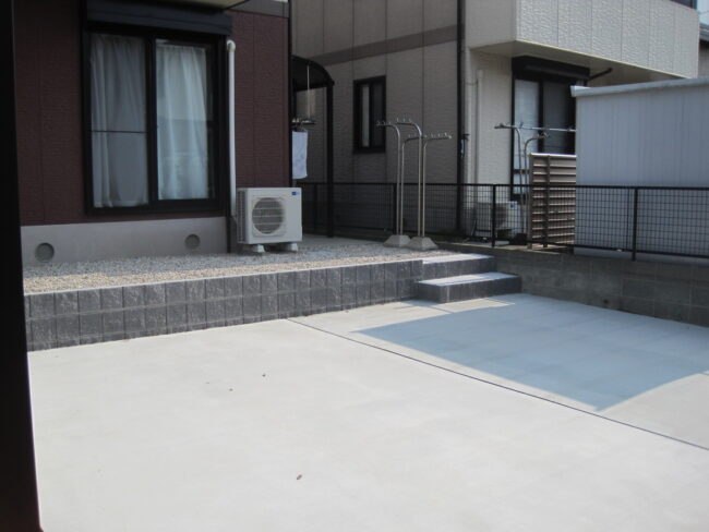全体的にシンプルながらもしっかりと雑草対策した外構リフォーム工事となりました。