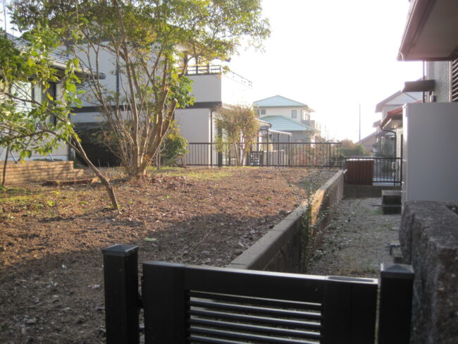 隣地境界の生垣を撤去して、フェンスを設置したいとご相談いただきました。生垣は、定期的な剪定や消毒が必要となる為、毎回かなりの重労働です。