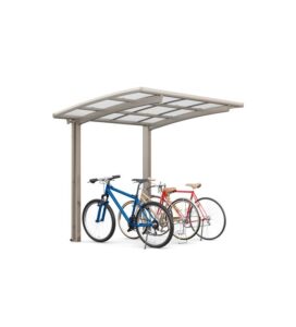 最も一般的なのが、アルミ製の柱とポリカーボネートの屋根を組み合わせたサイクルポートです。(材質は商品によっても異なります。)