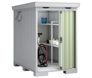 完全に覆われた空間に収納できるのが物置タイプです。物置の横に自転車を置くスペースのある製品もあります。