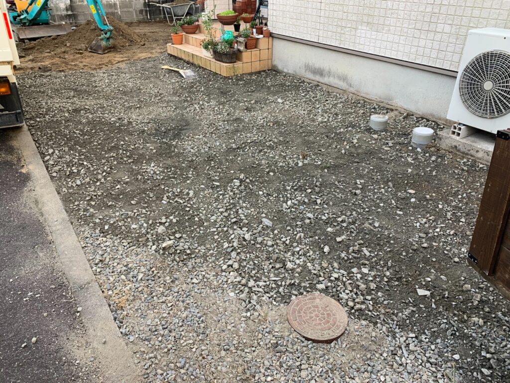 乱形の自然石を一部入れたアプローチ+駐車スペースへと工事が進んでいきます![]()