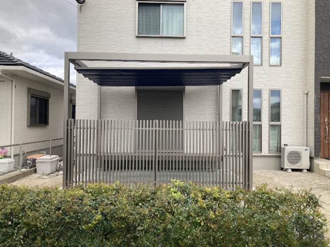 お庭に開放的な空間を/独立オーニング+デッキ工事