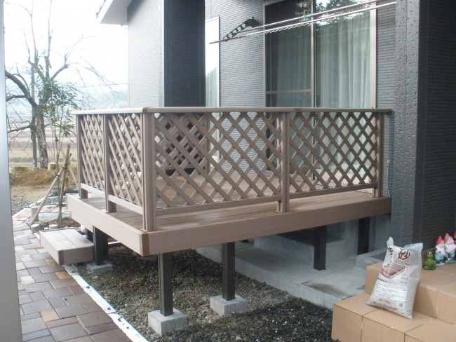 コンクリート製のステップがありましたが、洗濯を干すのに不便だったので、デッキを検討しお願いしました。