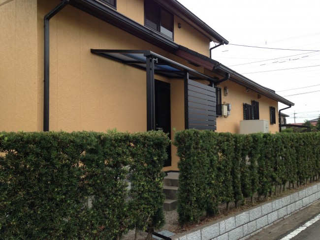 テラスを取付け、出入口の部分に目隠しを付けました。