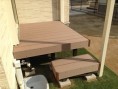 デッキのクリエモカ色と、テラス屋根のポリカのブラウン色を茶系で統一し、テラスの本体はホワイト色で明るい仕上がりになっています。