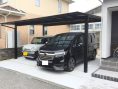 建物に合わせてレンガも黒色系、カーポートもブラックと、モノトーンカラーで統一し、落ち着きのある仕上がりになりました。