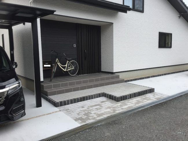 外構をモノトーンカラーで統一し、落ち着きのある仕上がりに☆