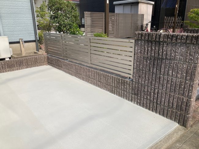 駐車スペースは砂利敷されていましたが、土間コンクリートを打設し、お車もスムーズに駐車できます。