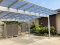 横幅は約7.8mの3台用カーポートで、奥行きも約5.7mありますので、一般サイズのカーポートより、ゆったりとお使い頂けます。